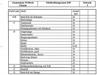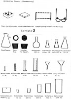 | Die wichtigsten Änderungen: Schülerexperimente sollten leichter durchführbar werden - Alle Schubladen wurden leer geräumt. Ebenso wurden die Unterschränke geleert. - Für Kleingeräte wurden zur besseren Übersicht mit Hilfe der Schüler spezielle Blöcke hergestellt. - Die Kleingeräte und Blöcke sollten besser zugänglich werden. Dazu wurden sie in die Außenschränke gestellt. Diese mussten zum Teil hierfür mit den Schülern umgebaut werden. - In dem neu gewonnenen Raum konnten spezielle Teile für "jugend forscht" und Wasseranalysen gelagert werden. Die entsprechenden Schüler hatten Schlüssel, um daran zu kommen. - Eine Reihe von Geräten aus Platzmangel mussten in die Sammlung umgeräumt werden. Hier eine Aufstellung über die Lagerung von Geräten und Chemikalien. Ganz unten noch Zeichnungen einiger Kleingeräte für die Schüler im Anfangsunterricht. ![]() Die eigentlichen Mängel des Raumes konnten dadurch natürlich nicht abgestellt werden.